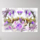 Feine lila Crocuses, Bäume und Gras.