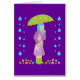 Diese bezaubernde Quelle Vektorgrafik Illustration zeigt ein niedliches Mädchen mit einem grünen Regenschirm, einem lila Regenmantel, blauen Haaren und bunten rosa, blauen, gelben und orangefarbenen Blume, die im Regen stehend sind! Dieses trendige und stilvolle Kunstwerk ist das ideale Geschenk für jeden, der originelle und wunderschöne Cartoon-Lieben und Frühling!