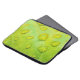 Dieser 13" Laptop-Sieb zeigt ein originelles abstraktes Foto von ZoeSPEAK von Regentropfen auf einem Blatt. Im näheren Foto sehen wir die Beschaffenheit und die Adern des Blattes in den Konturen der Wassertropfen vergrößert. Das leuchtend gelbe grüne Blatt reflektiert das Blau und Gelb des Himmels und des Sonnenlichts.