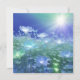 Ein Feld glühender, ätherischer Blume badet im strahlenden Sonnenlicht und verleiht der Szene eine traumhafte und ruhige Qualität. Die Blume, von tief bis hellblau, heben sich von der üppig grünen Unterwüste und dem sanft blauen Himmel ab. Eine Karte mit einer Botschaft der Hoffnung für einen Freund oder ein Familienmitglied, der eine Zeit der Traurigkeit, des Verlusts, des Auseinanderbrechens, der Depression oder einfach nur der Ermutigung bedarf.