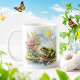 Tasse mit einem Aquarellfrosch in einer Federlandschaft. Personalisierbar.