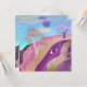 Diese wunderschöne abstrakte Landschaft zeigt eine sanfte Hügelkulisse mit blühenden Frühlingsbäumen und Vögeln in Rosa, lila, Beige, Bräune, Gold, Grün und Blau.