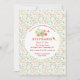 Eine süße Blumeneinladung mit einer Andeutung des Frühjahrs. Kleine bunte Blumen bilden ein Kreisfenster für Ihre Personifizierung. Eine Gruppe der Blumen und ein gelber Vogel sind in der Mitte.