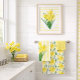 Herzlich willkommen in Ihrem Bad mit diesem freundlichen, gelben Tuch-Blume-Set. . Dieses Set im Badezimmer ist mit einem grafisch gestalteten Strauß von Narzissen auf dem Handtuch, einem Blumendruck auf dem Handtuch und einem massiven Gelb auf dem Waschlappen ausgestattet. Die gelben Blume-Handtücher, die während der Frühlingssaison im Set aufbewahrt werden, verleihen Ihrem Bad eine angenehme Note. Es wäre schön zu Ostern oder Muttertag.