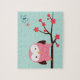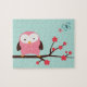 Niedliche Illustration einer Eule hockte auf einem Kirschbaum.