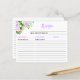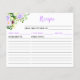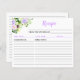 Diese hübsche und elegante Rezeptionskarte mit violetten Aquarellblumen und Blättern. Es ist ideal, um Ihre Rezepte organisiert behalten, Brautpartys oder als Geschenk zu geben. Der Text kombiniert handgeschriebene Skript- und Serif-Schriftart für ein stilvolles und modernes Aussehen.
