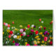 Frühlingsgrenze mit Tulpen und Narzissi mit grünem Rasen gefüllt.