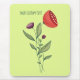 Frühlingsblumen Mousepad mit einer Linie von abstrakten hübschen einfachen Blume in grün, lila und korallenrot und anpassbaren Text.