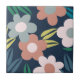 Abstrakte, farbenfrohe Frühlingsblumen und Blätter mit rosa, blauen, grünen und gelben Farbtönen auf marinebasischem Hintergrund