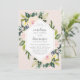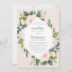 Unser Frühjahrsblütenfest lädt Braut und Bräutigam in einer Kalligraphie-Schrift ein, die durch eine weiche und schicke Aquarellblütenanordnung gerahmt ist. [ Teil unserer Frühlingsblütenblütler Einladung Hochzeitskollektion. ]