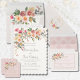 Der Frühling Pfirsichblüte Blues Hochzeit Einladung. Schöne Frühlingpastellpastellfarben in Pfirsich, rot, buttergelb kaskadiert über der Einladung. Personalisieren Sie mit Ihren eigenen Hochzeitsinformationen für die perfekte Hochzeitssuite.