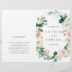 Elegantes Hochzeitsprogramm mit einem Kranz von Aquarellfarben-Blume in Rosa und Weiß mit grünem Blattwerk. HINWEIS: Sie müssen sie bei ihrer Ankunft halbieren.