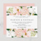 Elegante, blumengeschmückte Hochzeitsfeiern mit einem Bouquet von rosafarbenen Hydrangea-Blume mit Imitaten Rose Goldfolie und grünen Blätter. Persönlich gestalten Sie die blumengeschmückten Einladungen mit Ihren Namen und Hochzeitsdetails. Die quadratische Hochzeitseinladung kehrt zu einem soliden, rot-rosa Hintergrund zurück. Ideal für Hochzeiten im Frühling und Sommer, Hochzeiten im Garten usw.