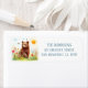 Rücksendeadressen-Aufkleber mit einem braunen Bären in Aquarellfarbe in einem Frühling vibes Landschaft. Personalisierbar.