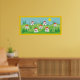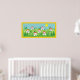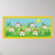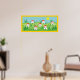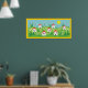 Frühlingsdorf, rote Dachhäuser, Blume und die Sonne im Himmel maßgeschneidertes Poster mit gelbem Rand.