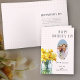 Muttertagskarte personalisiert mit Ihrem Foto und bearbeitbaren Nachrichten. Dieses Frühlingsblumendesign besticht durch ein Glas Narzissen in Blüte und Gingham-Design in Rosa, das die Karte auf allen vier Seiten schmückt.
