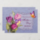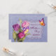 Hübsche, rosa und lila Tulpen und Schmetterlinge mit weichem blumenfeuertem Hintergrund in Lila. Diese schöne Mutter's Day Brunch Einladung hat das passende Backdesign. Der gesamte Text auf der Vorderseite und auf der Rückseite ist für Sie bereit, um mit Ihren Event-Informationen anpassen.