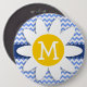 Frühlingserscheinung; blaues Zickzack Muster Button