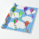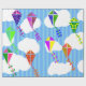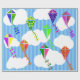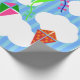 Dieses Papier hat ein geometrisches Design von Drachen, die in den Wolken eines blau gestreiften Himmels fliegen. Es ist sehr farbenfroh und festlich.