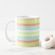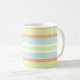 Weiche, aber farbenfrohe Pastellstreifen in Aprikose, Robin's Eigelb, Sellerie, Weiß und Limone Kaffee-Tasse. Es gibt eine passende Tischdecke.