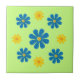 Handgeschnittene hellblaue und gelbe Blüten auf dem schönen hellgrünen Hintergrund auf dem Foto Keramik Tile für Küche und Wohngestaltung. *Alle Dinge, die Sie auf den Produkten sehen, sind handgefertigt, aber Sie müssen wissen, dass Sie ein Foto bekommen!