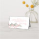 Rosa Frühlingsblüten und Platzkarte der Gebirgsfarbe für Ihre Gäste. Rosa und graue Hochzeitskarte mit gefalteter Sitzkarte mit einer Zeile für das Handschreiben von Namen und Tischnummer und personalisierten Namen und Nachrichten auf der Rückseite.