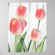 Der Frühlingsgarten erwacht mit brillanten korallenrosa Tulpen zum Leben. Dieses originelle Design besticht durch luxuriöse Aquarelltöne, die die zarten Blütenblätter im frischen Frühlingsgarten-Kunstbild hervorheben. Erinnern Sie sich an den Geruch eines jeden Tages frisch gezapften Tulpenbouquets!