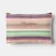 Diese Toilettentasche, das Reisezubehör oder das Make-up essentials Beutel Design verfügt über eine atemberaubende Kombination aus dunkelrosa, pastellfarbenem Frühlingsholz grün, violett taupe und korallenorange gestreiftem Retro-Chic Muster. Die Vielfalt dieser Farbkombination erzeugt einen dynamischen und rhythmischen Effekt. Das Muster ist verziert und elegant, mit einer Touch von Funkness und Hipster Flair. Es gibt auch Raum für die Anpassung oder Personalisierung mit einem Monogramm oder eine Initial Ihrer Wahl. Ob Sie nach einem schicken und modernen Stil oder einem Vintagen Retro-Trend suchen, dieses Muster wird Ihren Geschmack und Ihre Persönlichkeit Anzug geben.