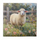 Ein wunderschönes Gemälde eines Frühlingsschafs, umgeben von bunten Wildblumen in einer ruhigen Wiese. Die sanfte Struktur und die lebhaften Farben verleihen dieser Landschaft einen friedlichen, pastoralen Charme.