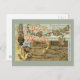 Frühjahrskarte mit schlafender Frau, die von blutenden Herzen, Schmetterlingen und Blume träumt