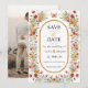 Erzählen Sie Ihren besonderen Tag mit der bezaubernden Schönheit der Natur. Unser 'Boho Spring Bliss' Save the Date Einladung beinhaltet zarte Aquarellfarben-Wildblumen, Schmetterlinge und ein hochgeschätztes Monogramm, das ein wertvolles Foto umgibt. Set den Ton für eine Hochzeit voller Liebe und der Magie des Frühlings.