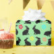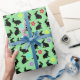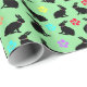 Diese Papierrolle ist ein pastellgrün mit Frühlingshasen, die in schwarzer Silhouette in einer Sitzposition mit bunten Blume um ihren Hals gemacht werden. Matchende Blume werden auch um das Blatt berippt.