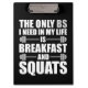 Frühstück und Squats - Bodybuilding Workout Klemmbrett