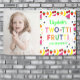 Two-tti Frutti! Summer fruit 2nd birthday featuring watermelon, blueberries, strawberries, oranges, peaches, bananas, and cherries. Photo template via Pixabay licensed under CC0 and must be replaced with your own photo