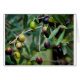 Les olives sont une délicatesse méditerranéenne que l'on retrouve dans tous les pays qui bordent la mer Méditerranée et les sous-mers. Ce fruit est généralement cultivé de manière biologique, car l'olivier est très robuste et fort. Ces olives vertes mûrissent jusqu'au noir pendant qu'elles pendent de la branche. Cette carte de voeux est entièrement personnalisable.