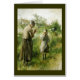 Petite fille attrapée avec des fruits dans son tablier être sermonnée par une vieille femme portant un foulard. Art vintage de l'artiste suédois Carl Larsson.