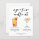 Diese Gartenhochzeit Signature Cocktails Menü-Blatt bietet einfache schwarze Typografie über 2 Drinks und ihre Zutaten für Ihre Outdoorsommer-Bar. Ein niedlicher Tequila Sunrise und Lemon Drop zeichnend fügen einen coolen Flair zu Ihrem Bar Menü hinzu. Füllen Sie bitte die Namen des Paares und das Datum für seinen Empfang aus.