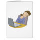 Cette conception est pour n'importe qui qui a éprouvé la frustration d'ordinateur. Elle est d'une femme s'asseyant à son bureau d'ordinateur avec un regard très démissionné et frustré sur son visage. Cette conception de frustration d'ordinateur semble grande