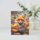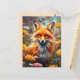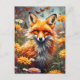 Ein hübscher kleiner Fuchs schaut dich an. Er sitzt zwischen Blumen und spielte mit Schmetterlingen.