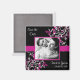 Magnet Réservez la date, avec votre photo sur une élégante arrière - plan tourbillonnante noire et fuchsia. Ajoutez votre photo et entrez vos informations dans notre template.com convivial.