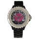 Fuchsia Gerbera Daisy mit schwarzem und weißem Swi Armbanduhr