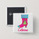 Cette épingle de badge de semelle de Noël personnalisée avec votre nom ou d'autres mots fera un excellent moyen de vous présenter lors des réunions, fêtes et événements de Noël. L'art présente une botte de talon haute femme fantaisie et colorée pour un bas. Un sapin de Noël vert citron blanc se trouve sur le côté de la chaussure qui est accentuée de points et de rayures et d'une coupe de rayures turquoise et rose fuchsia. Les couleurs des bottes sont rose fushia, bleu turquoise, vert citron et jaune sur un arrière - plan moderne blanc et frais. Ce design est l'art original de Phyllis Dobbs et vient sur la coordination des produits dans ce magasin. Entièrement personnalisable.