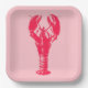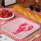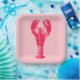 Teller in einer digitalen Skizze eines Hummers in fuchsienrosa auf pastellfarbenem korallenrosa Hintergrund