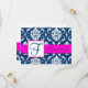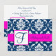 Fuchsia Navy Blue Damask Save the Date Karte