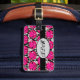 Fuchsia Pink Black Gray Damask Monogramm Gepäckanhänger