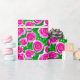 Papierumschlag in tiefgrüne, fuchsienrosa Wildblumen mit gelben Mitte, in einem grünen Grasfeld