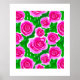 Poster in tiefgrüner bis pastellfarbener Fuchsia-Rosa-Rose mit Blätter in Smaragdgrün