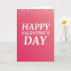 This greeting card features the words “HAPPY VALENTINE’S DAY” in large white serif letters centered vertically, standing out clearly against a smooth background that fades from soft blush pink at the top to deep fuchsia-red at the bottom. The strong contrast makes the message feel direct and affectionate ❤️. Above the text, small white hearts and tiny round dots drift down from the top edge like a light sprinkle, adding a gentle, celebratory motion. The scattered shapes vary in spacing so the top area feels airy rather than patterned, like confetti caught in a calm breeze. With the warm pink-to-red color shift behind it, the layout suggests closeness and a shared moment, as if the card is leaning in to say something sweet 🥰. The lettering stays crisp and centered while the falling shapes frame it without covering the words. Near the top margin, the white hearts and dots cluster a bit more densely before thinning as they descend toward the middle.