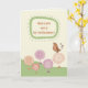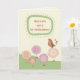 Eine sehr nette Karte, um eine gute Nachricht an jemanden zu senden, der einen angesagten Ersatz hatte, der für Mann oder Frau geeignet ist. Whimsikale Blume in einer schönen Landschaft, wo ein niedlicher Vogel sieht das Gefühl besser Nachricht Banner umgeben von Punkten.