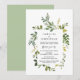 Carte d'invitation de mariage avec thème de verdure d'été moderne, parfaite pour votre réception de mariage intime ou fête de célébration après le mariage. Ajoutez vos détails avec une police / lettrage noir assorti.